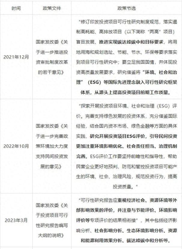 表:基礎(chǔ)設(shè)施投資項(xiàng)目ESG評價(jià)相關(guān)政策