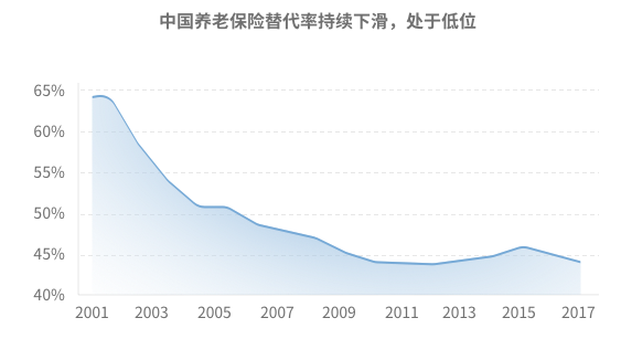世界銀行建議如果退休后生活水平與退休前相當(dāng),養(yǎng)老金的替代率需要達(dá)到70%以上,目前我國(guó)基本養(yǎng)老保險(xiǎn)的替代率約為45%,難以滿(mǎn)足高質(zhì)量生活需求。